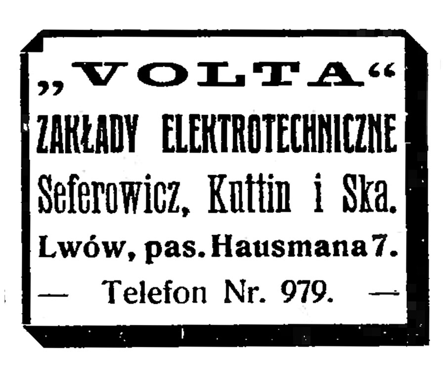 Lwów. Ad for the engineering company of Jakób Kuttin. The 1910 business directory from Lwów.